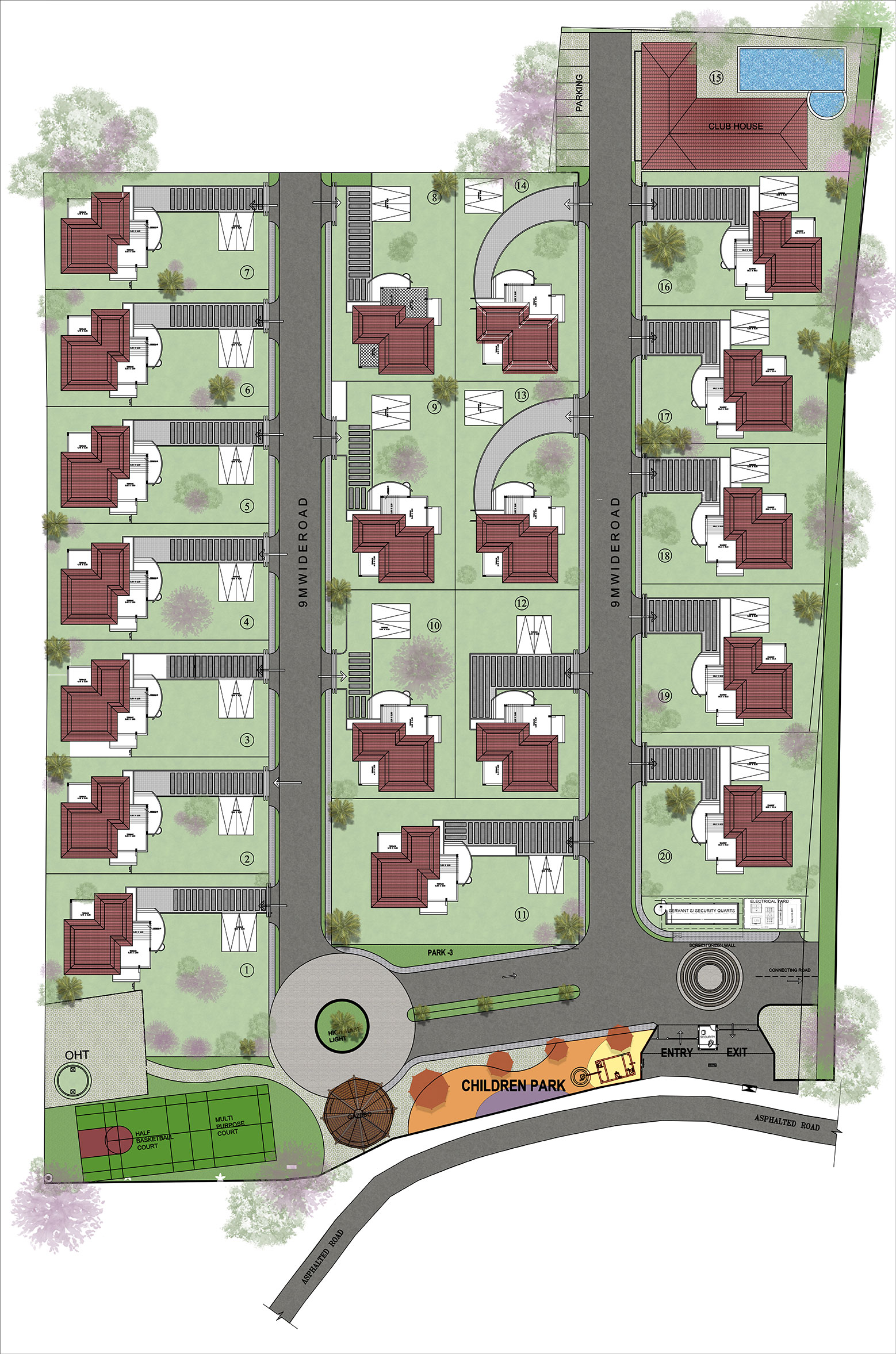 - Infrastructure: Wide roads with an underground drainage system